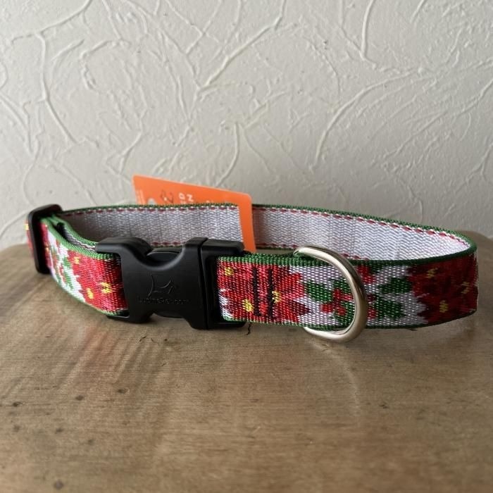 - ワンタッチ首輪・Mサイズ・25mm幅 ポインセチア柄 40-71cm LUPINEルパイン アメリカ製 軽量 丈夫 中型犬・大型犬