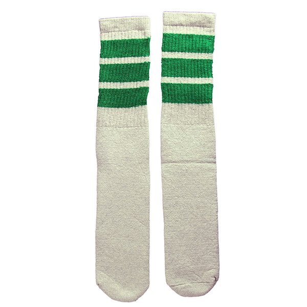 > SkaterSocks ロングソックス 靴下 男女兼用 ソックス スケボー Knee high Grey tube socks with Green stripes style 1 (22インチ)