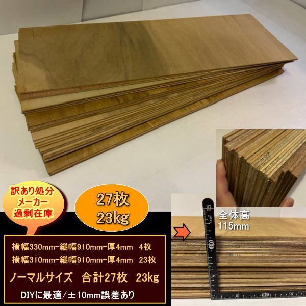 - 工場端材 ベニヤ 27枚 約23kg サイズ 330-910-4mm×4枚 310-910-4mm×23枚 高115mm 低コスト 無塗装 送料無料 訳あり処分 DIY