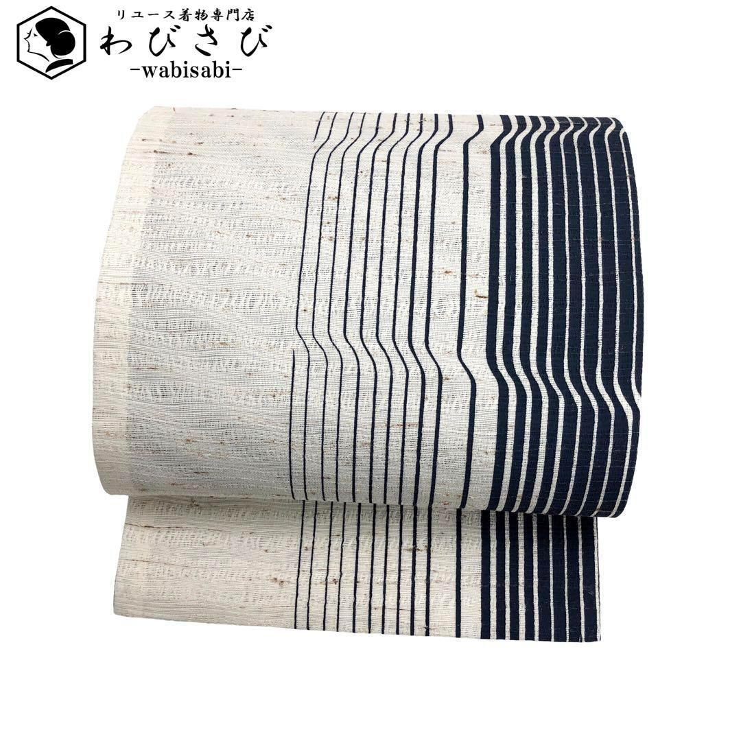 > 袋帯 ぜんまい紬 縦縞幾何学模様 乳白色 O-2580 着物 きもの kimono 和服 和装 中古 リサイクル着物 【送料無料】
