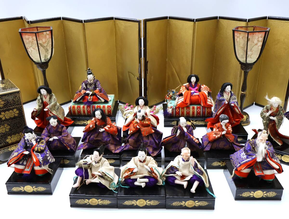 > ★中1394 古い 雛人形 雛道具 ジャンク品 ひな人形 おひな様 お雛様 三人官女 五人囃子 随身 仕丁 重箱 雪洞 ひな道具 時代物 92507141