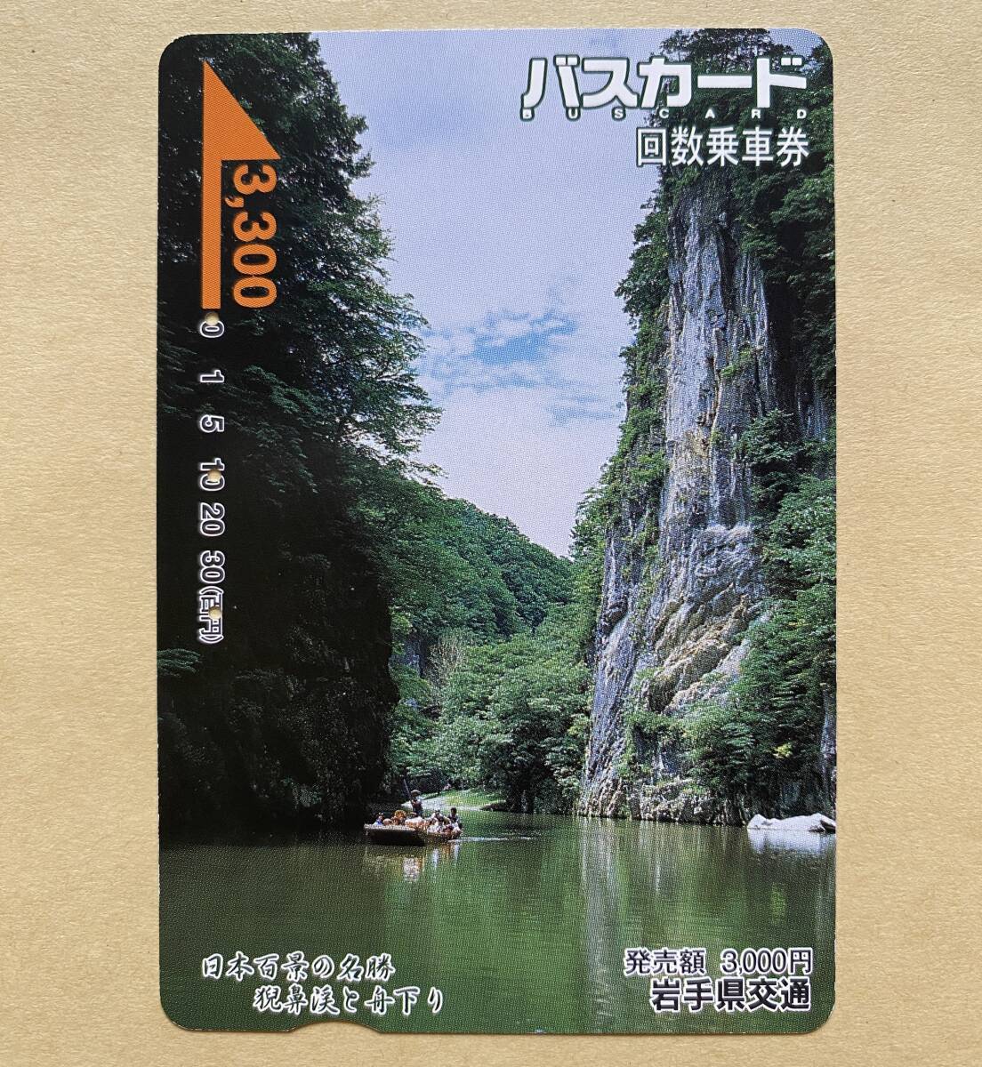- 【使用済】 バスカード 岩手県交通 日本百景の名勝 猊鼻渓と舟下り