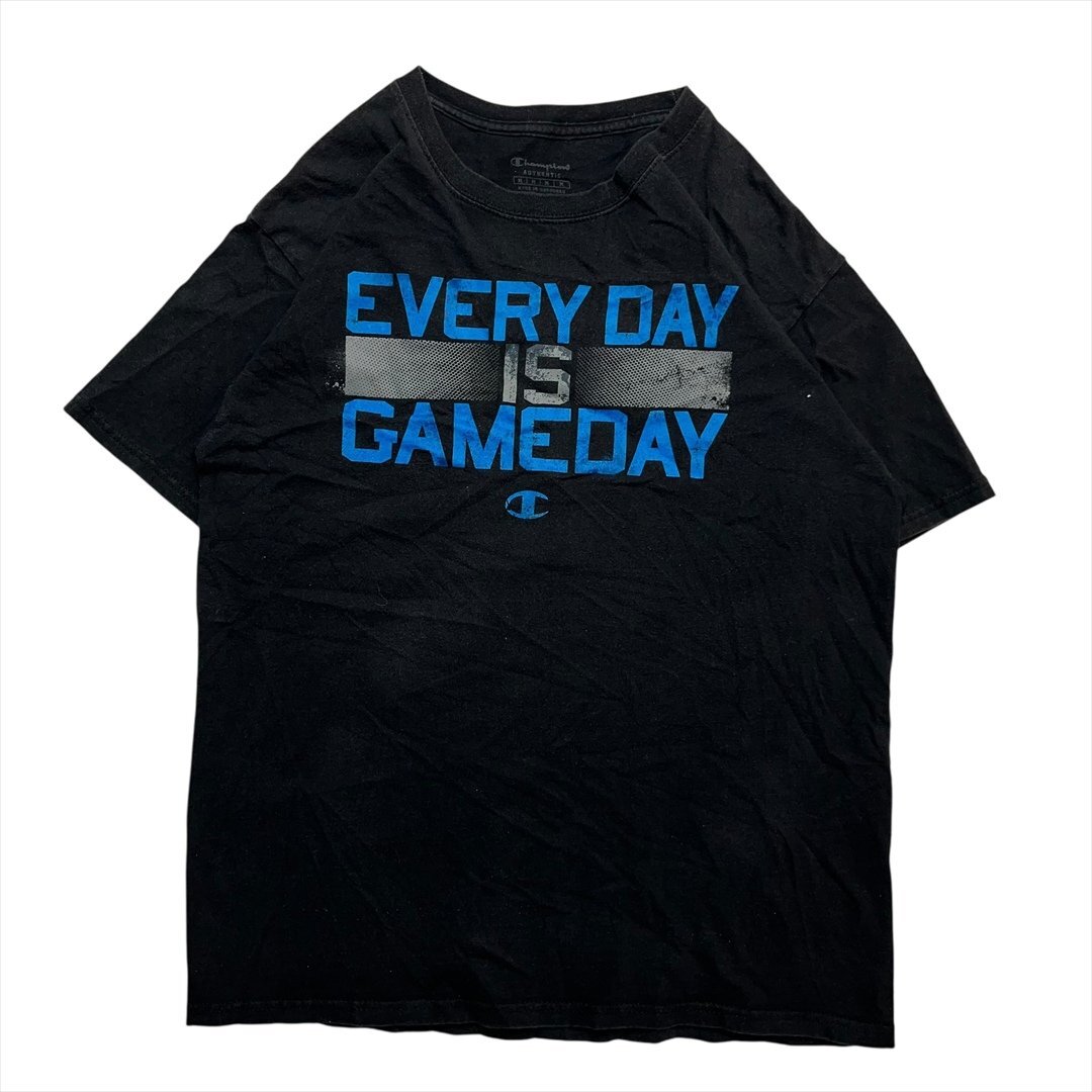 - Vintage Champion チャンピオン EVERY DAY IS GAMEDAY ロゴ Tシャツ 半袖 メンズ M ブラック 古着 クルーネック ビンテージ ヴィンテージ
