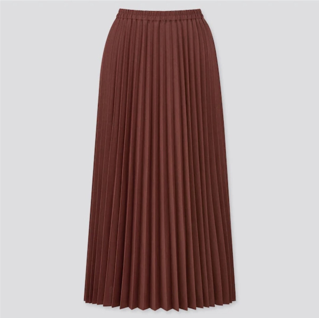 > XS 極美品 試着のみ ユニクロ アコーディオン プリーツ ロングスカート ワイン 茶色 XSサイズ スカート 無地 シンプル 上品 カジュアル