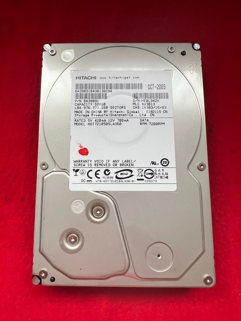 - 不良返金保証 ハードディスク HITACHI HDT721050SLA360 500GB(レコーダー BD-HDW45から外し)(d32)