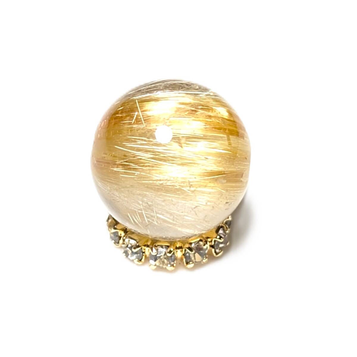 - 濃い金色がカッコいい ゴールド タイチンルチル 10ミリ 最強極太金針入り水晶 粒売り 貫通穴あり パワーストーン お守り効果 天然石 ギフト
