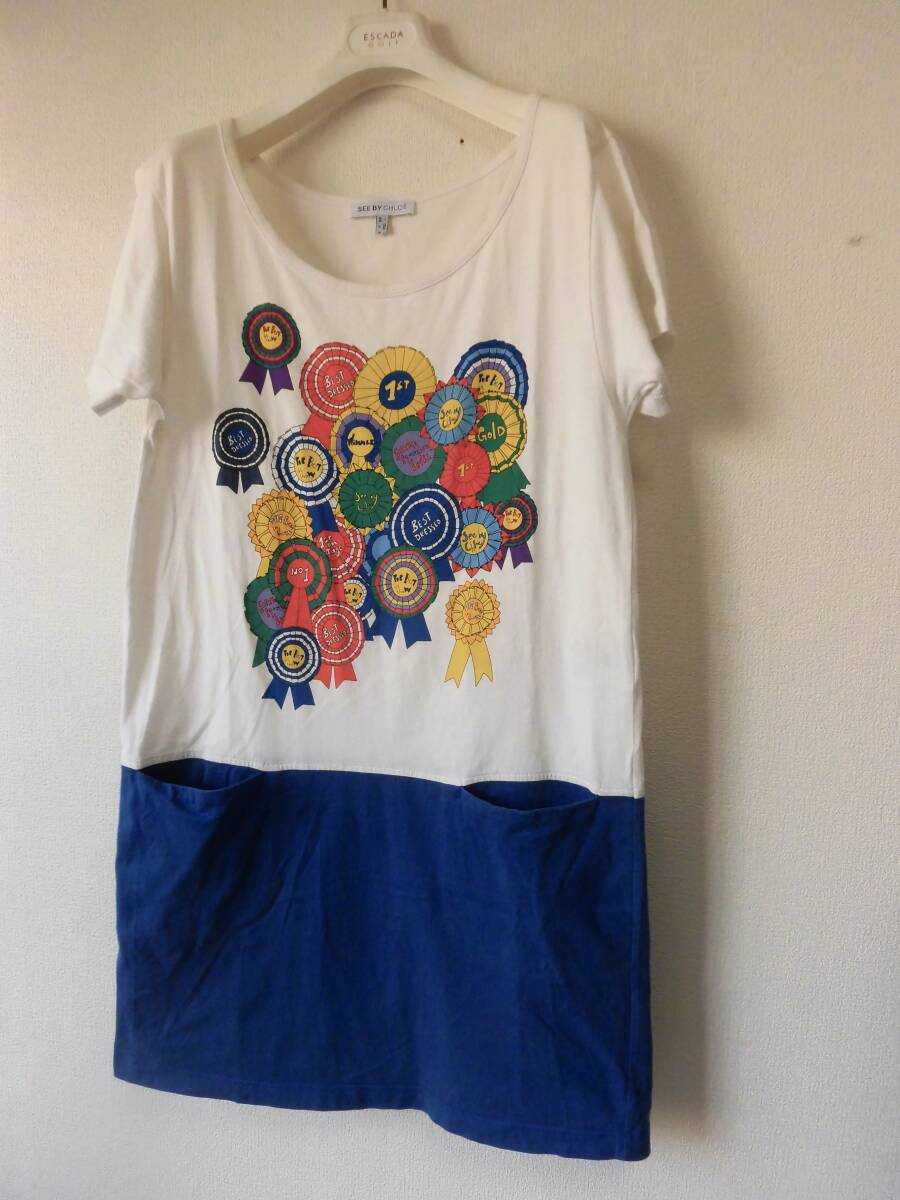 > ●イタリー製SEE BY CHLOE/シーバイ クロエ/白&青バイカラー切替/半袖ワンピース/サイズ M~L相当