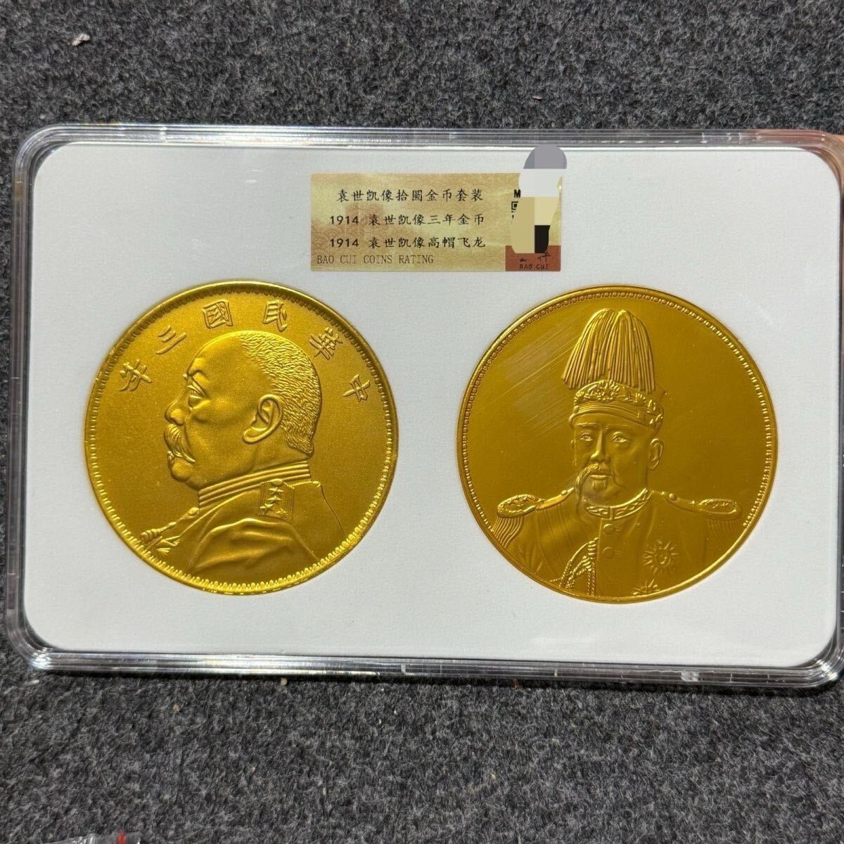 > 【極美品 希少】中国古銭 袁世凱 金貨 三年拾圓 高帽飛龍 鑑定済 評級幣 貴重 コレクション 旧貨幣 中華民国 アンティークコイン 2枚セット