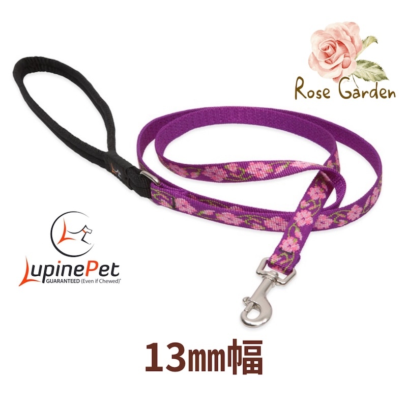 - ローズガーデン柄 13mm幅120cmリード パッド付き LUPINE アメリカ製 軽量 丈夫 小型犬向け ルパイン