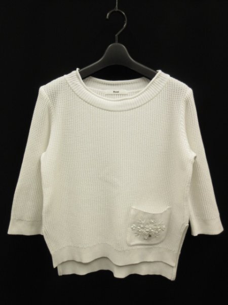 > ルネ Rene ★ 洗える♪ ロゴ金具付 ポケットビーズ刺繍 ワッフルプルオーバーニット トップス◆サイズ36