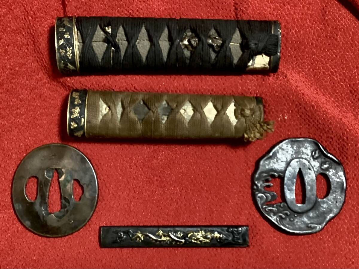 - 初だし 脇差の柄2点 脇差の鍔2点 小柄1点 計5点