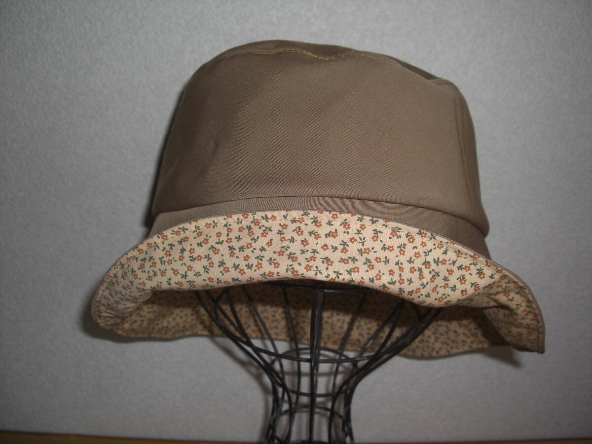 - ★ハンドメイド バケット帽 リメイク リバーシブル 茶&ベージュに小花柄