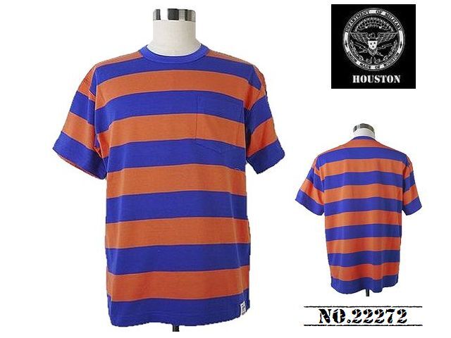 > 【送料無料 38%OFF】HOUSTON ヒューストン ボーダークルーネック ポケットTシャツ NO.22272 BLUE×ORANGE_Lサイズ