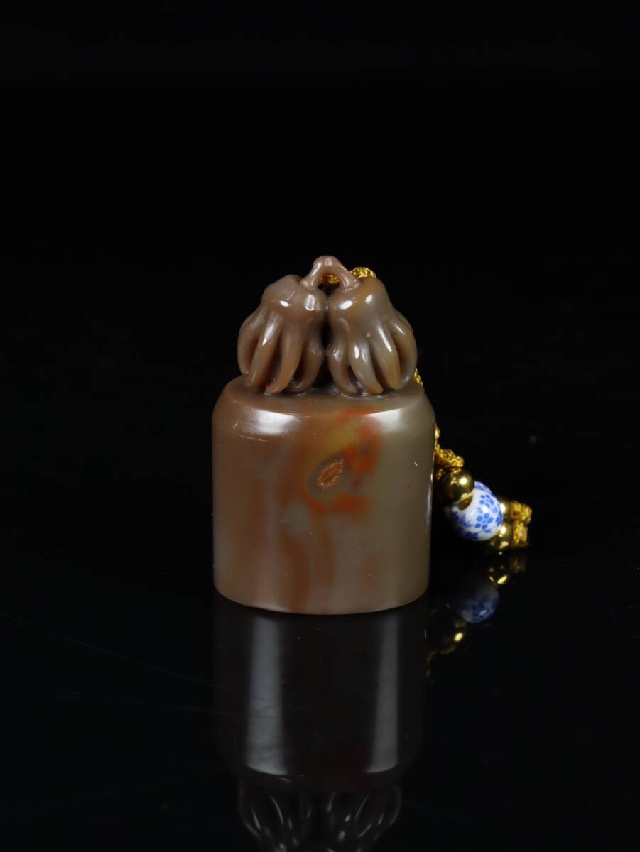 > 7+GV5502「東洋美術」 人間国宝 和田玉 極細工 古置物 中国古美術 【寿山石彫【福寿長寿】印章】 旧物 珍品 収蔵価値が高い
