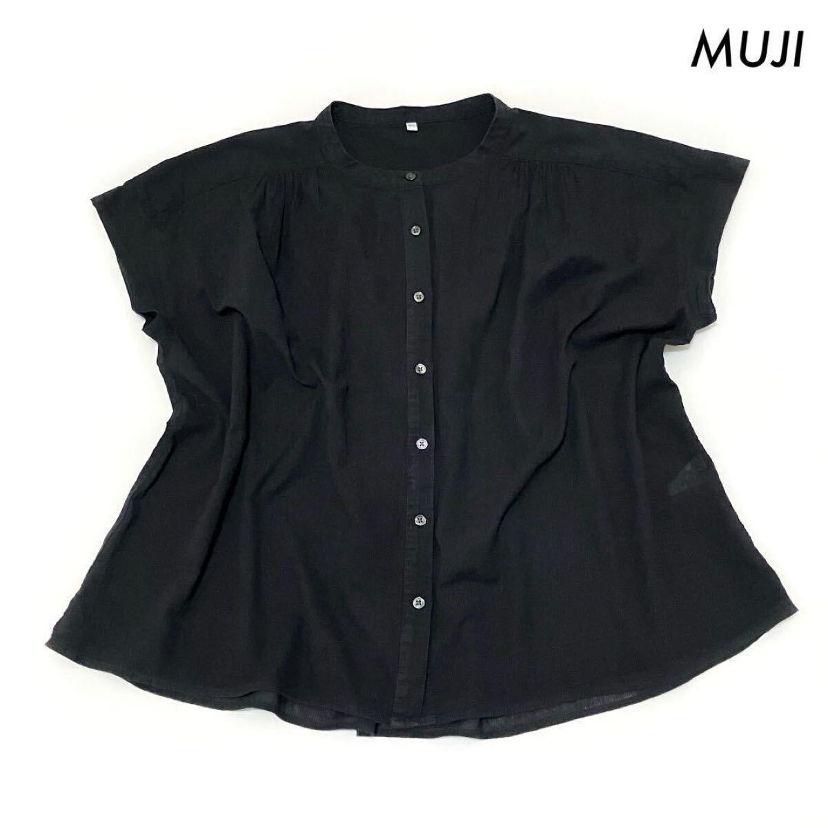 - 【送料無料】MUJI 無印良品★フレンチ袖ブラウス バンドカラー ブラック 黒 レディース