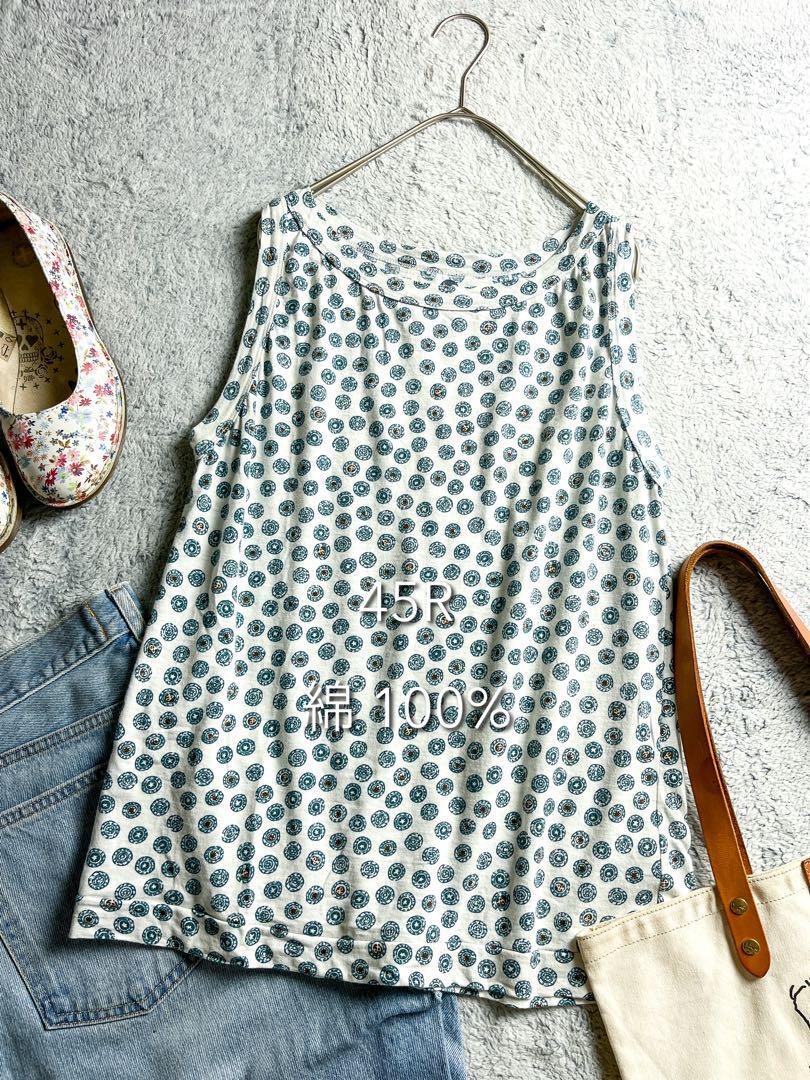- 【45R】45rpm 綿100% 小紋柄ノースリーブカットソー 3 グリーン