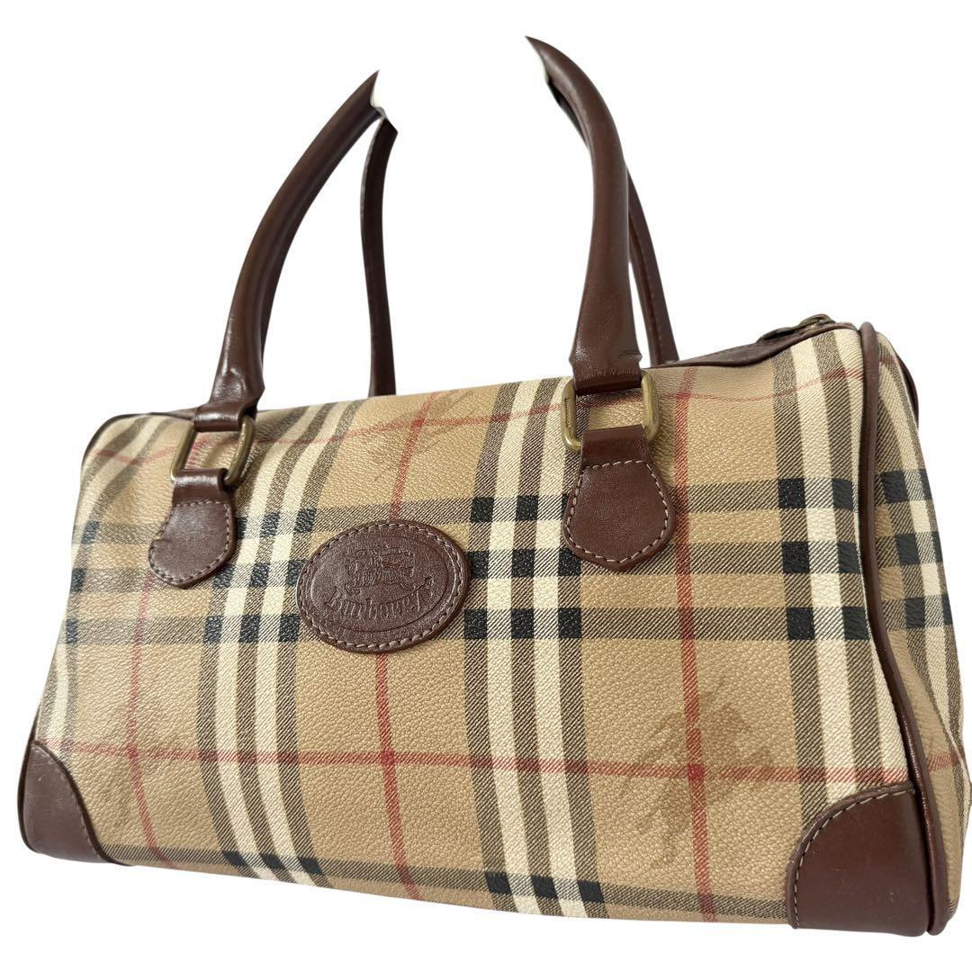 - 【美品】Burberry バーバリー PVC レザー ミニボストンバッグ トート 旅行カバン 肩掛け ノバチェック シャドーホース ホースロゴ ベージュ