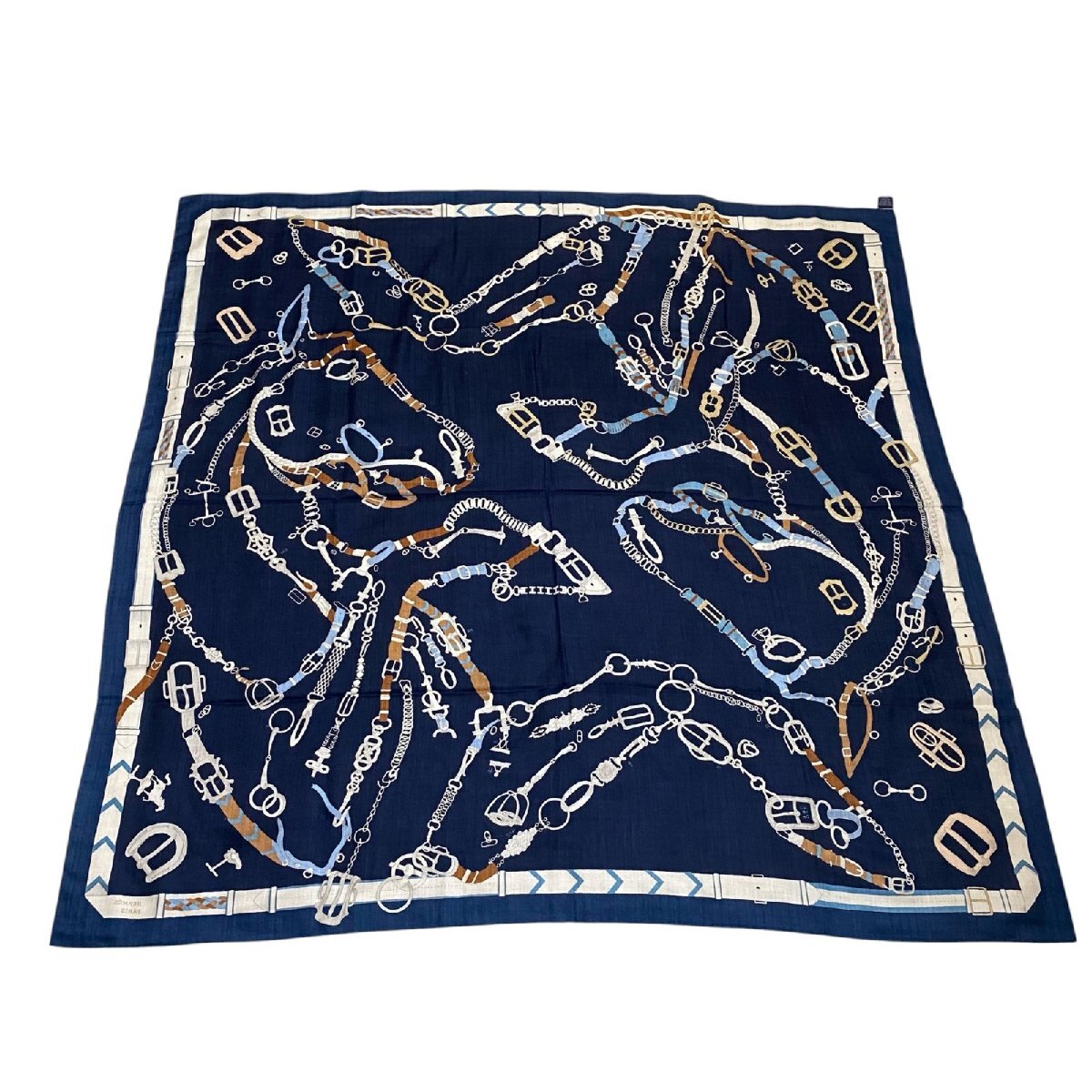 - 美品 エルメス HERMES レディース カレジェアン シュヴォーデシェネ 140 スカーフ バンダナ