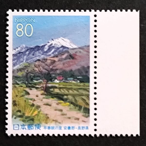 - [25072412] ふるさと切手【長野県・早春賦の里 安曇野】単片「穂高町常念岳と早春の安曇野の田園風景」水田 残雪 80円 2000年発行 美品