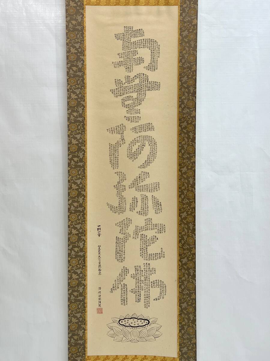 - 極美品 肉筆 澤崎浄圓『南無阿弥陀仏』仏説阿弥陀経 掛軸 書画 紙本 幅約480×高さ約1940mm 写経 真作 骨董 掛け軸 B