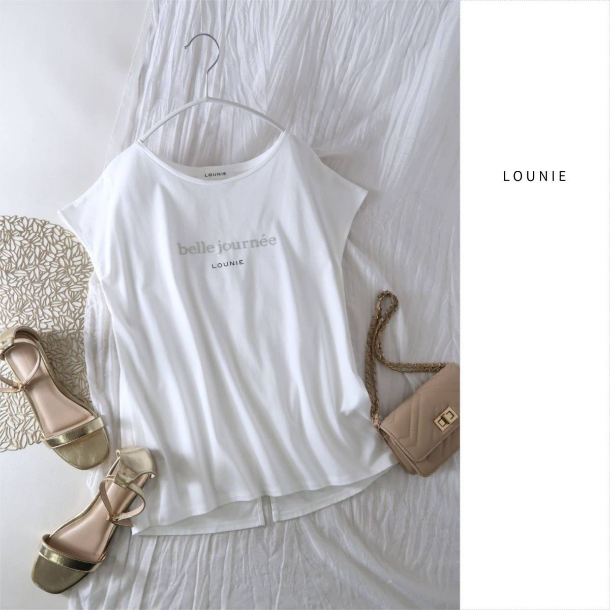 - 1万☆超美品☆ルーニィ LOUNIE☆洗える コットン グリッターロゴプリントTシャツ Fサイズ☆M-B 4109