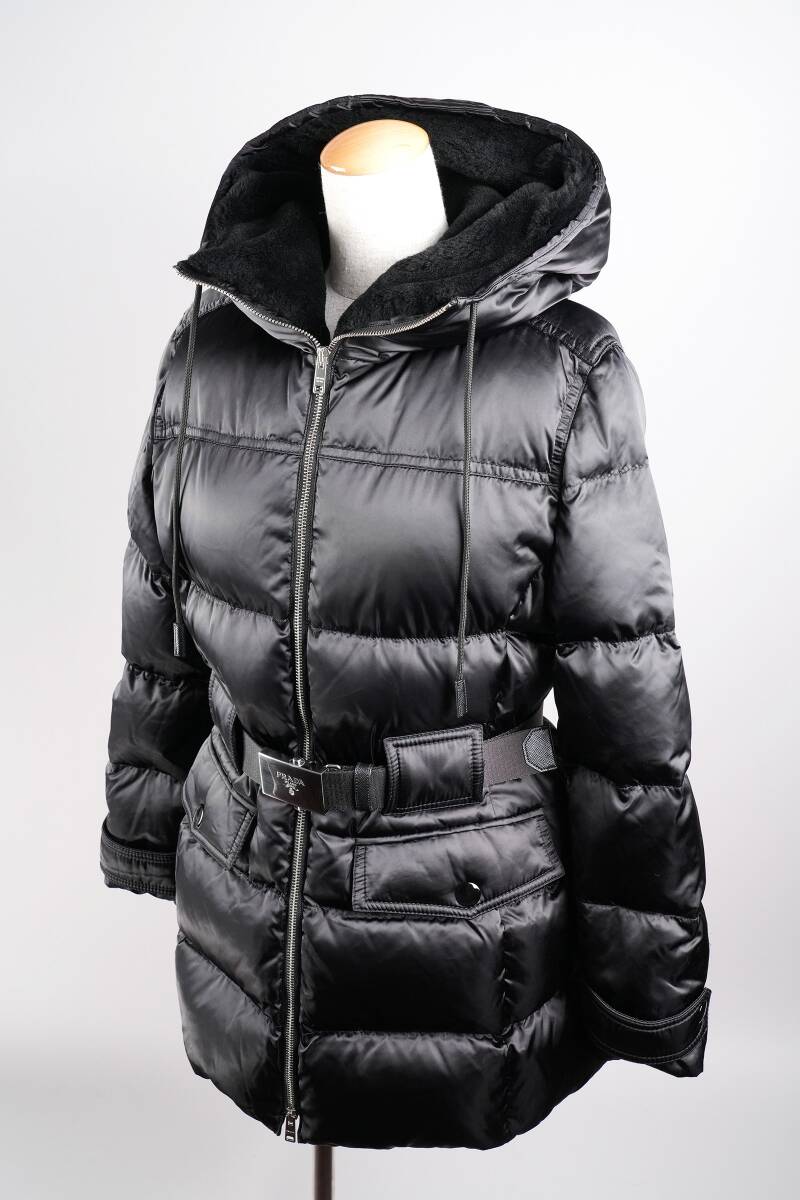 - 【即決・送料無料】極美品 [ダウンジャケット/ファー付フード]プラダ [サイズ42] [ブラック] レディース ジャパンタグ PRADA