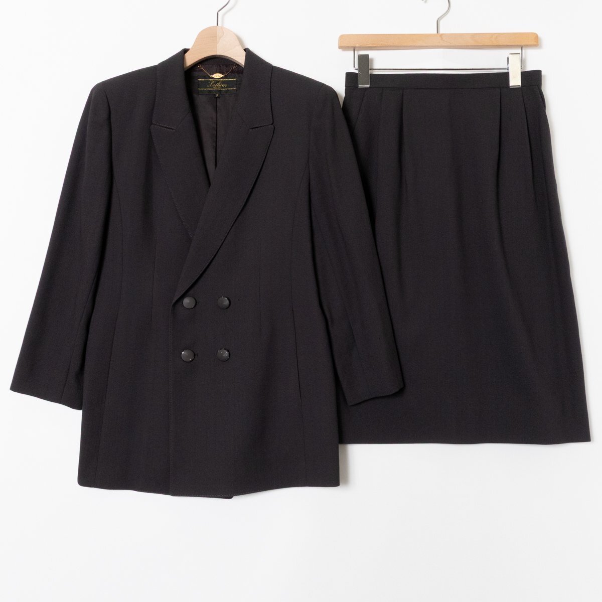 - Leilian レリアン スカート ジャケット スーツ セットアップ 日本製 チャコール系 9 ウール ポリ レディース 上下セット 肩パッド