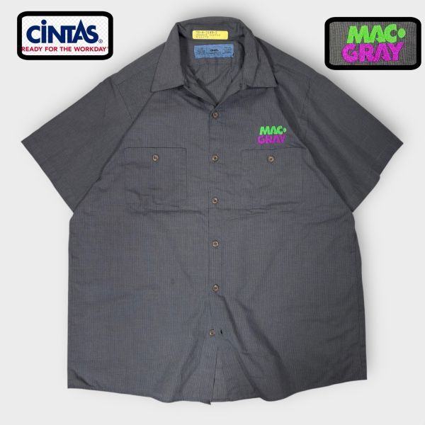 > ★MAC CRAYロゴ刺繍★CINTAS 半袖ワークシャツ sizeL アメリカ 古着 クリーニング プレス済み 2385