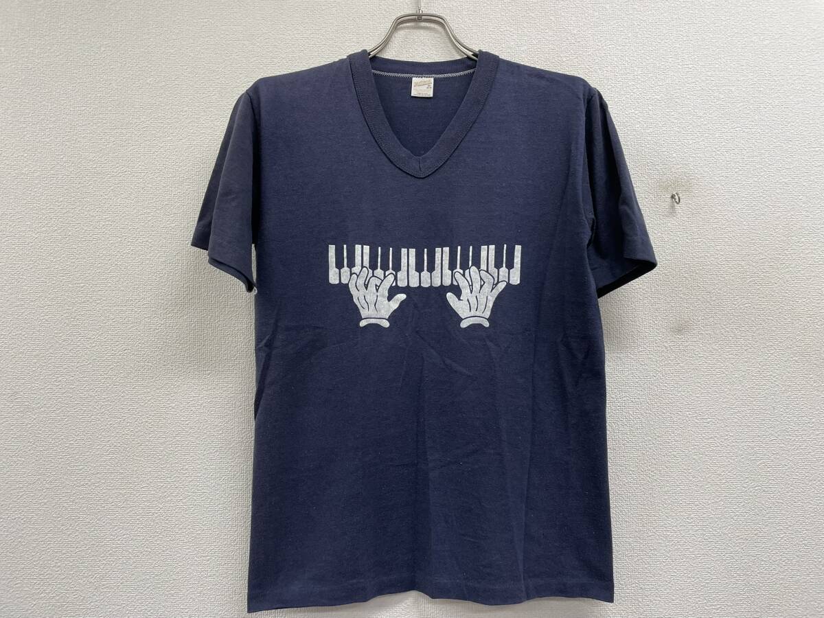 > ヴィンテージ★RUSSELL ATHLETIC sportswear 80s USA製ピアノプリントVネックTシャツ★ビンテージVINTAGEシングルステッチ★C2551