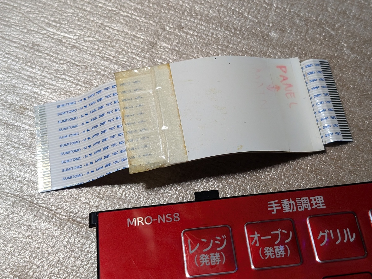 動作OKと判断したパーツです。日立の、この機種 NS8 には吹きこぼれ等でケーブルが汚れると接触不良になり動作しなくなる持病があります。今回の個体は正常に動くケーブルです。部品単体です。