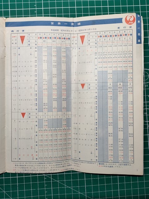 > a1【日本航空】JAL JAPAN AIR LINES ※難あり 国際線時刻表 昭和42年 [世界一周線ほかダイヤ 機内食サービス及び区間所要時間表 主要運賃