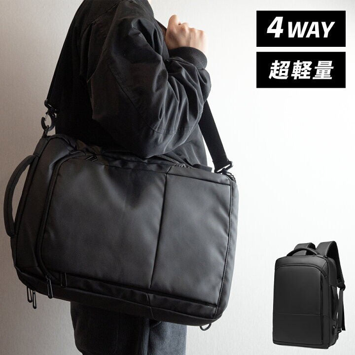 - 【4WAY】薄型ビジネスリュック 多機能リュック 大容量・軽量・防水・PC収納 バックパック リュックサック ブラック