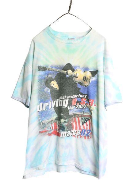 > 00s ★ ポールマッカートニー ツアー イラスト プリント タイダイ Tシャツ メンズ XL / オールド 当時物 ビートルズ バンド ロック 星条旗