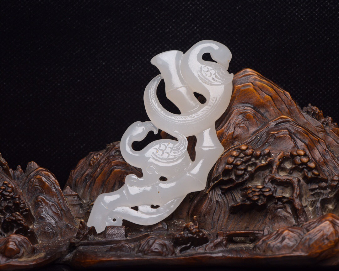 - 【超珍館蔵】和田玉製 細密彫 鳳鳥 置物 賞物 古賞物 古董品 古美術品 時代物 旧家蔵出 稀少珍蔵品