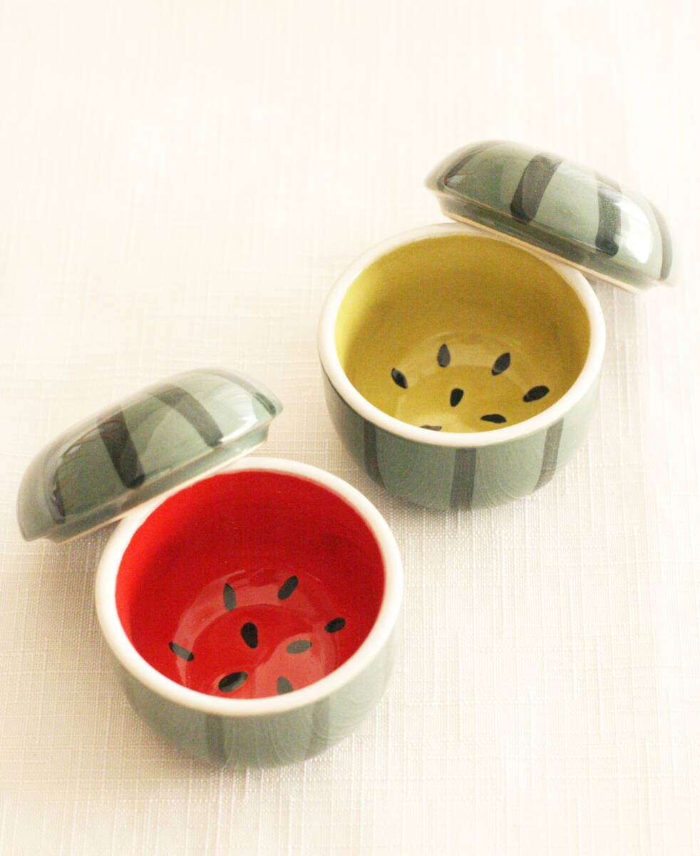 - 【新品未使用】2個セット 蓋つき小鉢 蓋付き小鉢 器 八寸 すいか 西瓜 2個セット