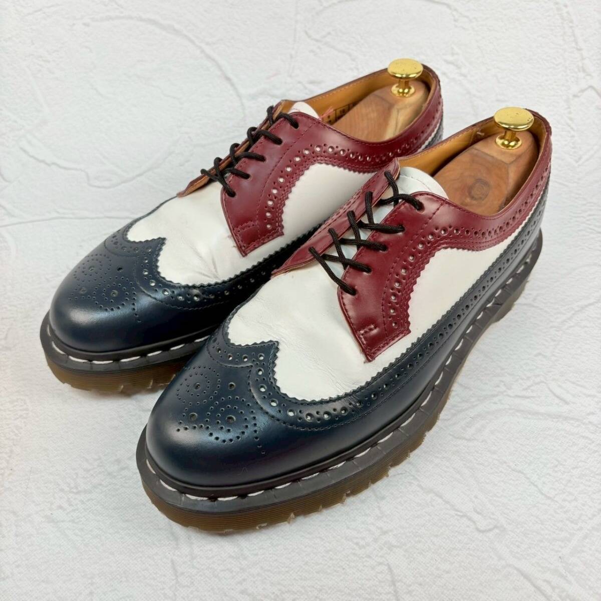 - 【良品・BEAMS別注】Dr.Martens ドクターマーチン 13411 3ホール トリコカラー ウイング メダリオン 外羽根 白 紺 トリコカラー UK9 / 28cm