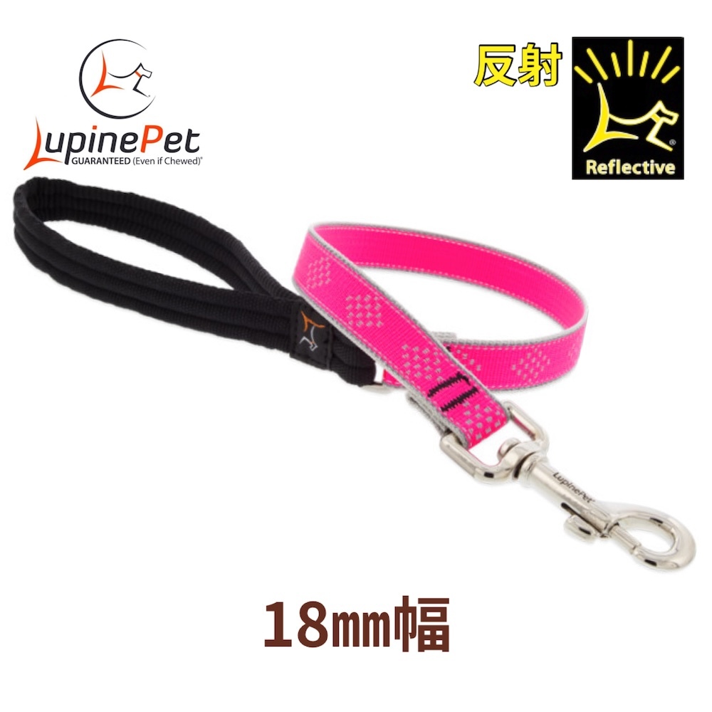 > 60cmショートリード リフレクティブ反射・ピンクダイヤモンド柄18mm幅 LUPINE ルパイン パッド付き アメリカ製 軽量 丈夫