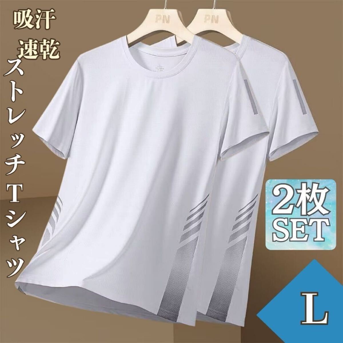 - 接触冷感 ストレッチ Tシャツ L2枚クルーネック 吸汗 涼感 ホワイト