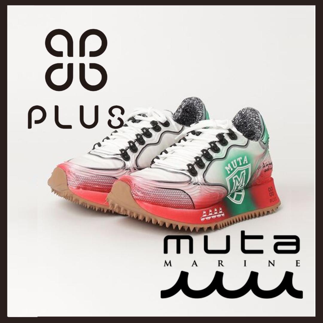 > ○★新品 未使用 PLUS × muta MARINE スニーカー ハンドメイド グリーン×レッド 41(プラス × ムータマリン)○●