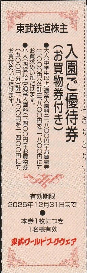 - 東武鉄道★株主優待券★東武ワールドスクウェア★ご優待割引券★即決