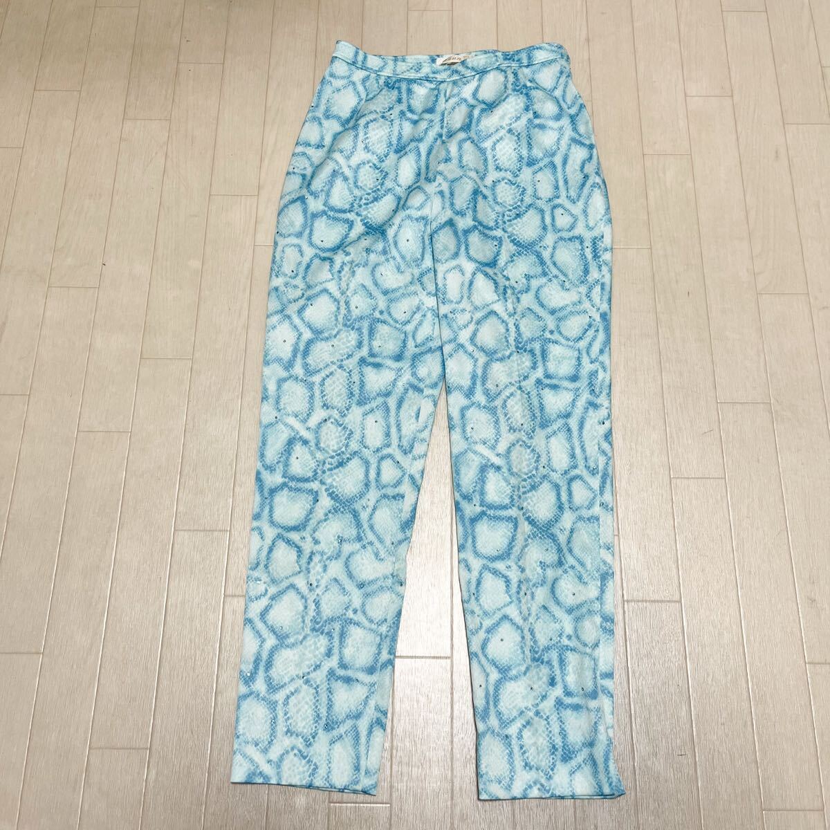 - 和805★② 伊太利屋 カジュアルパンツ ラインストーン ボトムス ストレッチ パイソン柄 9 ライトブルー レディース