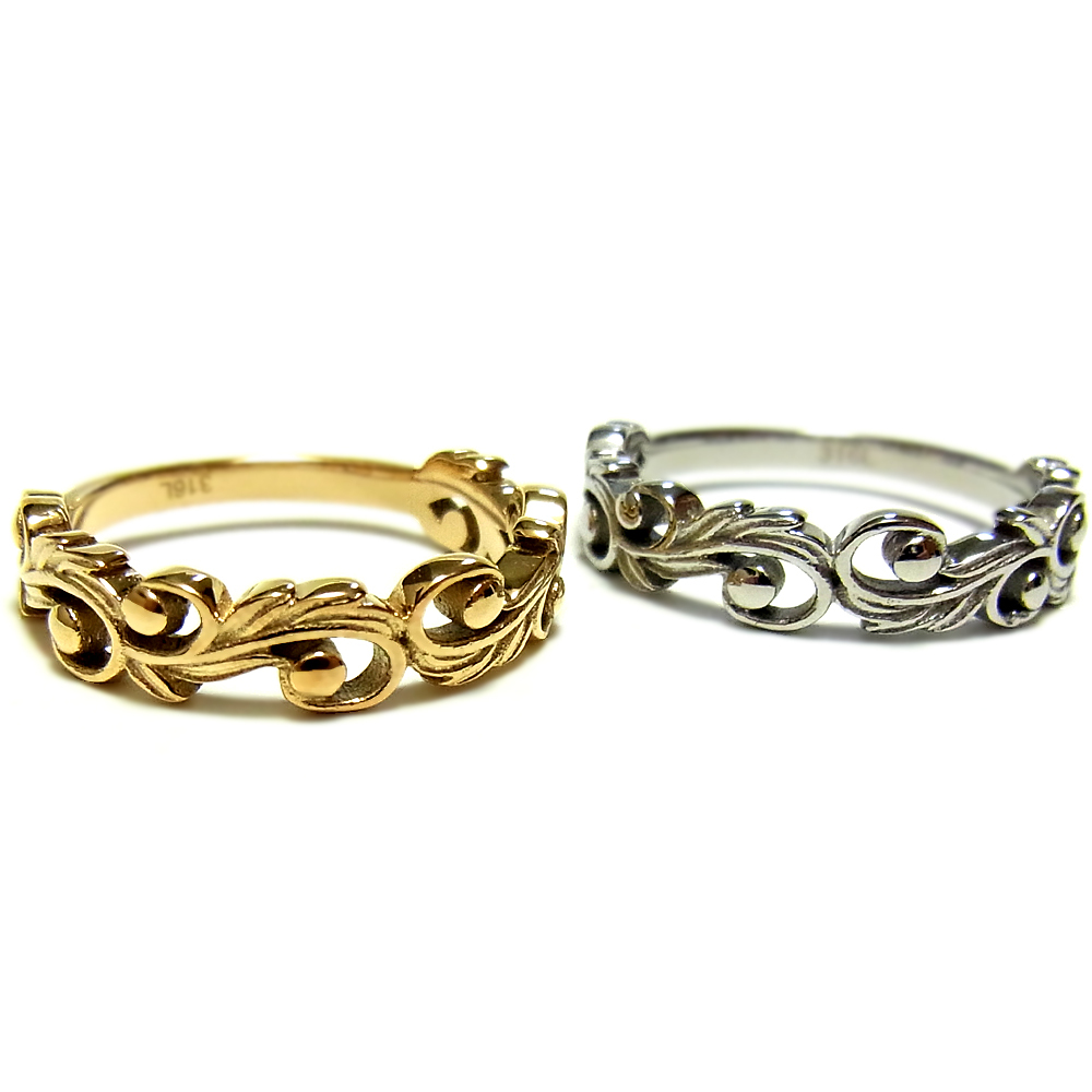 - 人気★ハワイアンジュエリー★金属アレルギー&温泉&海水浴ご使用OK★ステンレスリング★透かしスクロール/K14イエローゴールド/シルバー
