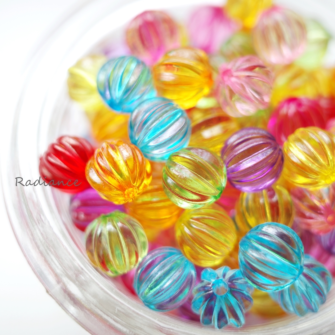 - ☆約126個☆9㎜玉☆透明デザインビーズ☆ハンドメイド素材☆ポップカラー☆