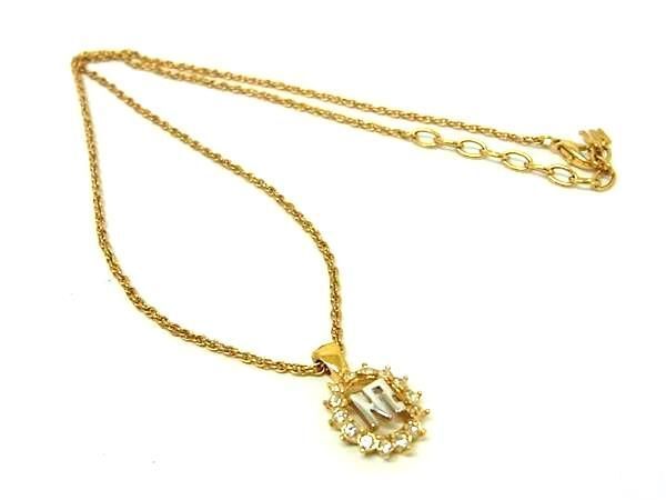 > ■美品■ NINA RICCI ニナリッチ ロゴモチーフ ラインストーン ネックレス ペンダント アクセサリー レディース ゴールド系 DE7328