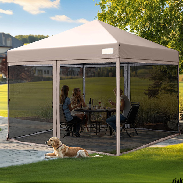 > 【ワンタッチ開閉できるメッシュ蚊帳テント】 ワンタッチタープテント サンシェード 蚊帳付き キャンプ バーベキュー 日除け ベージュ