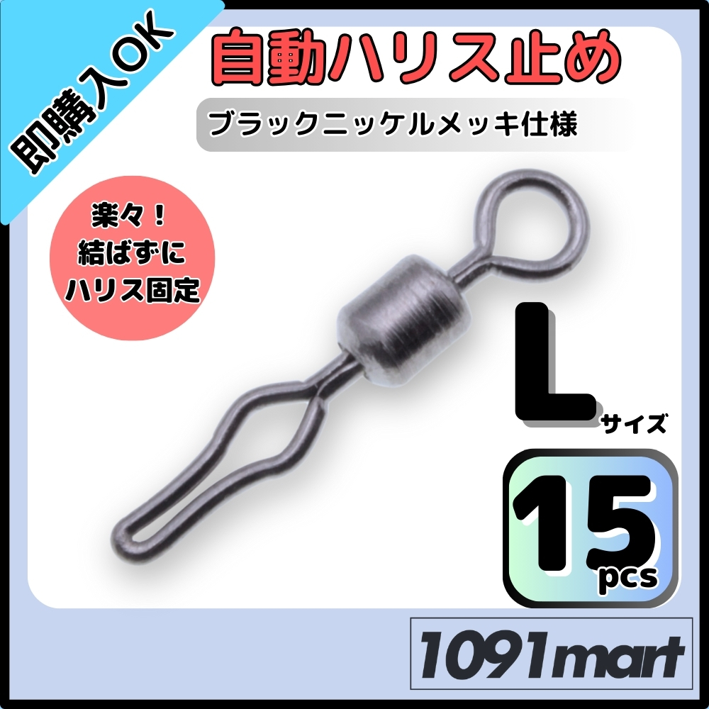 - 自動ハリス止め サルカン Lサイズ 15個セット ラインストッパー ローリングスイベル ちょい投げ 小物釣りの仕掛けに!【ミニレター】