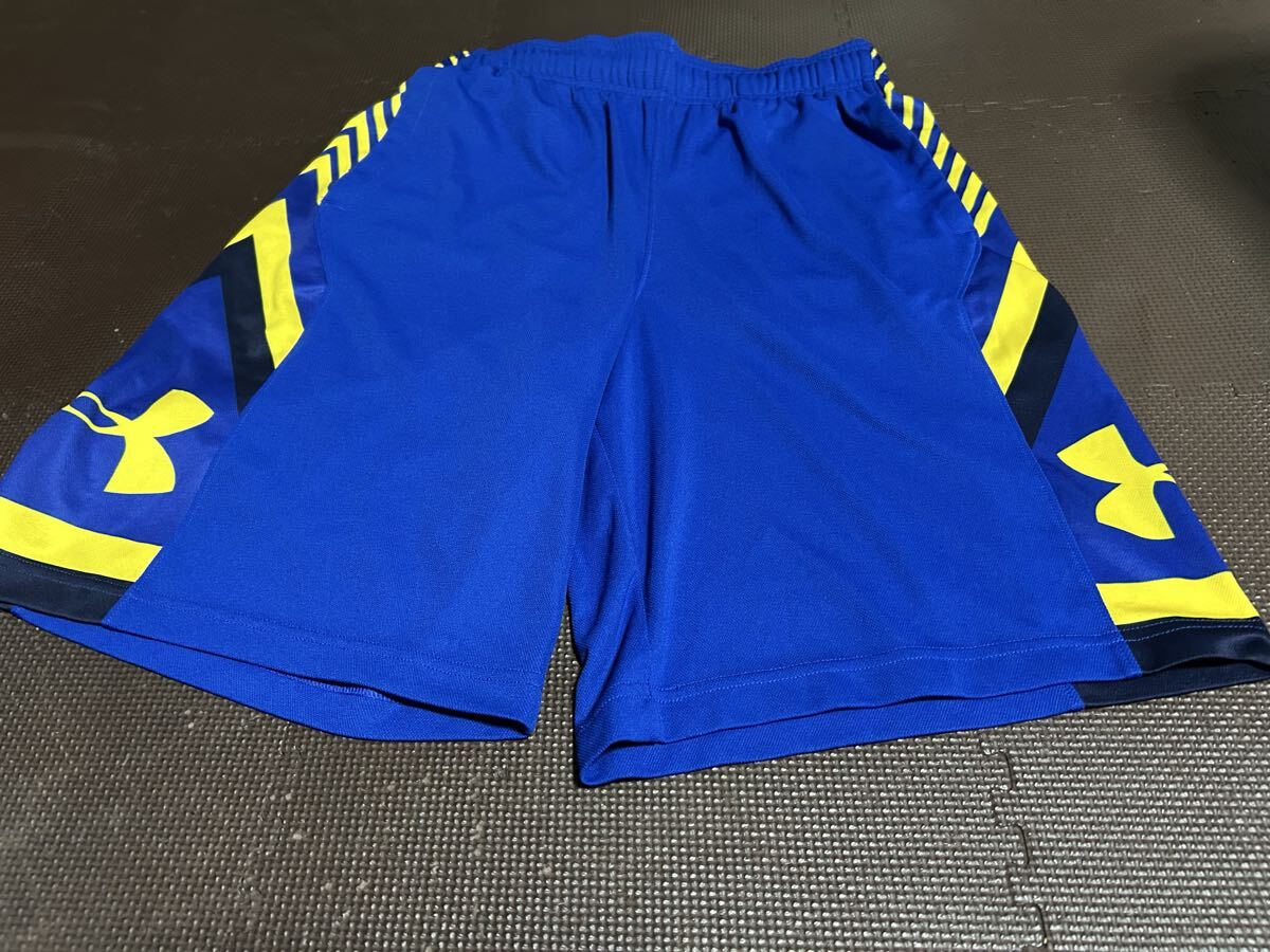 - 超美品UNDER ARMOUR青、濃紺、黄色、ロゴ黄色ストレッチハーフパンツ サイズMD