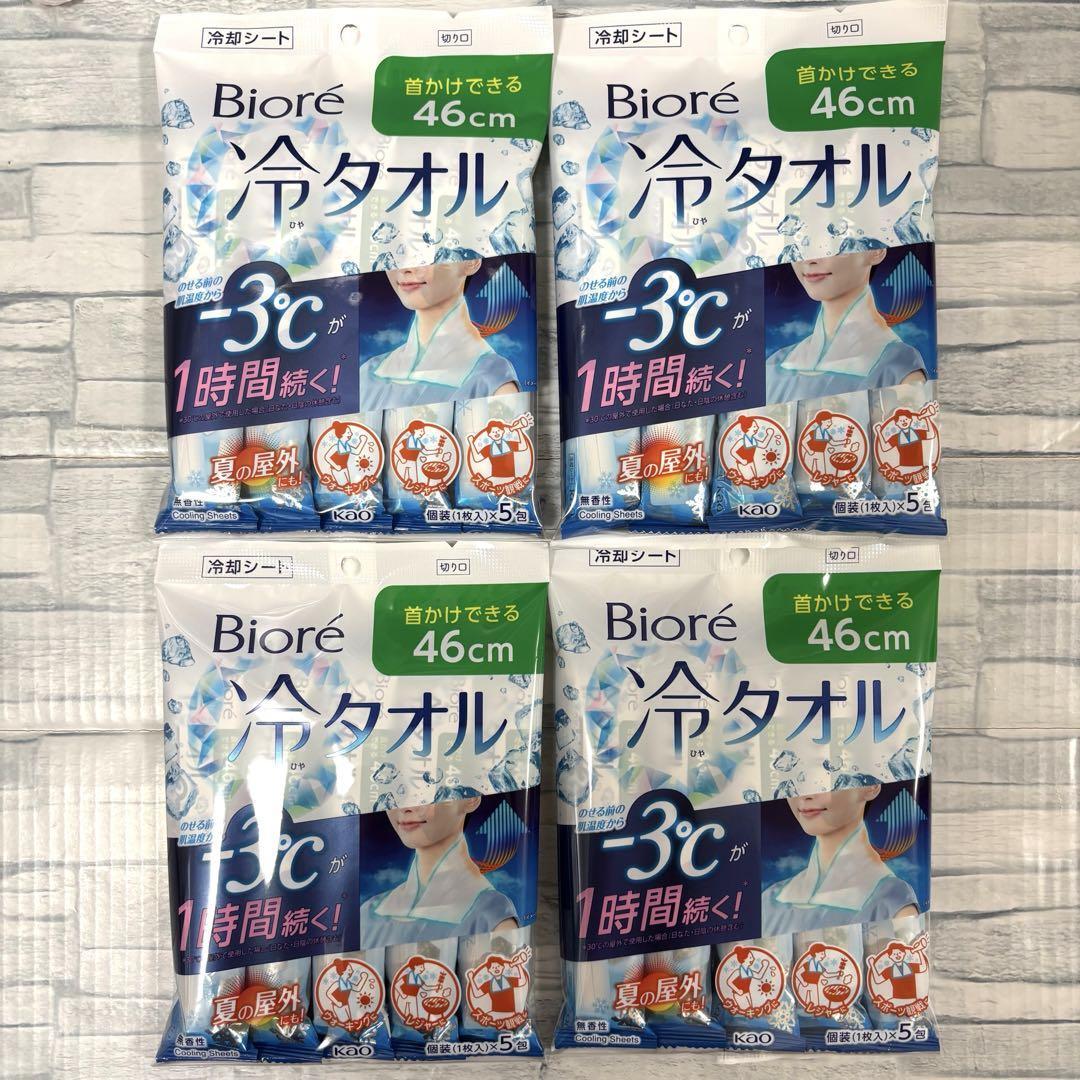 - ビオレ 冷タオル 5本入り ×4袋 計20本 冷却シート 無香性 花王 Biore 46㎝ ボディシート