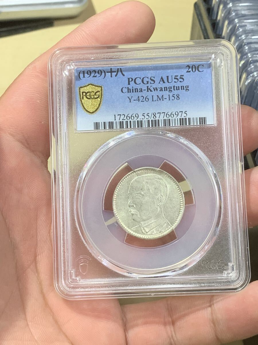 - 中国古銭中華民国銀貨 廣東省造貮毫銀幣 中華民国十ハ年 PCGS鑑定済みAU55