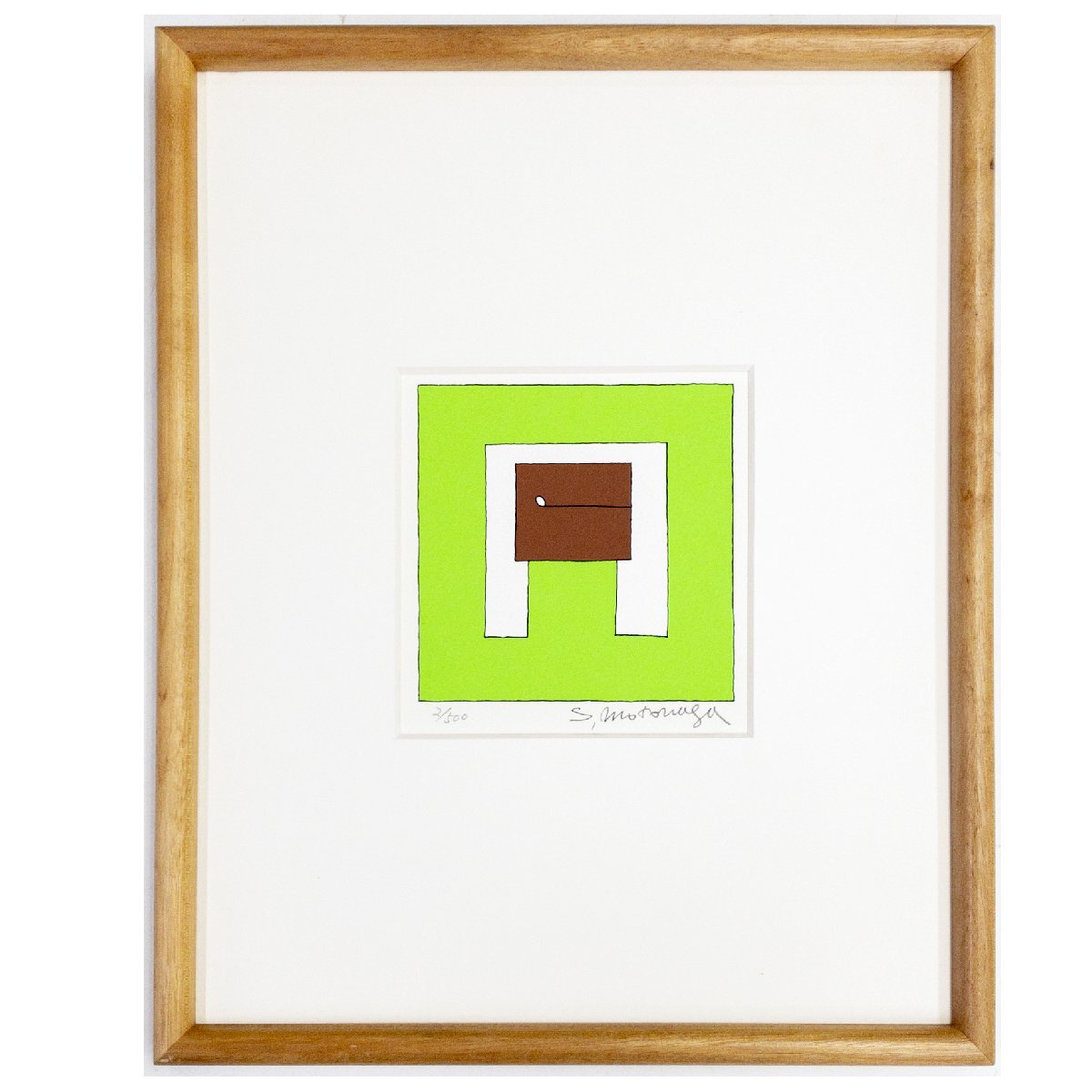 > 【SHIN】元永定正 「きみどりとこげちゃのしかく」 シルクスクリーン 1984年作 ed. 2/500 額装 サイン有り 具体美術作家